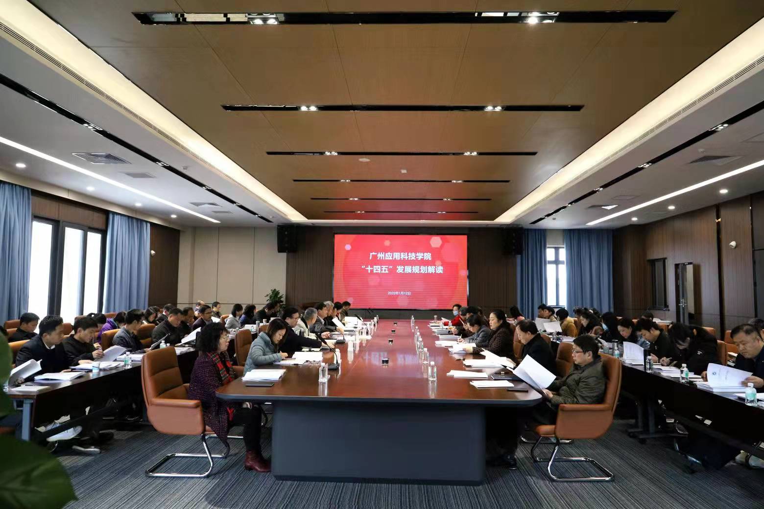 1月12日上午,我校在肇庆校区国际会议厅召开“十四五”教育事业发展规划解读会,对《广州应用科技学院“十四五”教育事业发展规划纲要》的前期调研、初稿撰写、征求意见、座谈研讨、最终形成定稿进行了全面说明,对规划的相关内容进行详细的解读。学校董事长、校长刘剑锋,党委书记王永云,执行校长庞永师等校领导出席了会议,全体中层干部参加了会议。会议由党委书记王永云主持。
