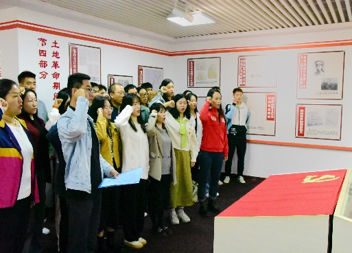 第一站我们来到红色文化研究室中国工农红军广宁周其鉴红军中学,教工第二党支部副书记高栋同志带领党员同志参观周其鉴纪念馆,介绍了周其鉴投身革命,领导广宁农民运动、广东农民运动和土地革命期间的斗争经历,让我们了解了周其鉴光辉灿烂的一生,随后步行参观了周其鉴故居。正值“一二·九”运动88周年这个特殊的日子,高书记还给我们介绍了“一二九运动”的历史背景及意义,回顾了“一二九”运动的光荣历史,带领全体党员面对党旗举起右拳重温了入党誓词,激起了所有党员同志对于日本帝国主义侵略中国的愤慨,点燃了大家的满腔爱国之情。