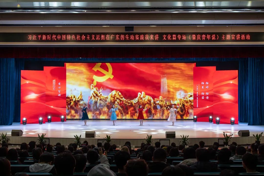 练就过硬本领,接棒赓续奋斗。来自肇庆学院、肇庆医学高等专科学校、广东理工学院、广东工商职业技术大学、广东信息工程职业学院、广东肇庆航空职业学院、广东亚视演艺职业学校、广东金融学院、广州华商学院、广州应用科技学院等10所在肇高校青年汇聚广应科的宣讲舞台,结合自身所学,讲述了青年之所思所想、所急所盼,所悟所感,紧扣习近平总书记赋予广东省的使命任务,以广东高质量发展的万千气象,生动诠释青年学子的青春实践。